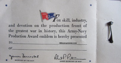 Because the Army Navy E Award was such a prestegious award given to companies that achieved certain criteria during wartime production, I have added information below that thoroughly describes the award/process. The link below credits the source where this information was found.